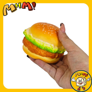 Product Description: Fast food for your hands! This hyper-realistic burger features a "crispy" looking golden chicken patty and fresh toppings, but feels incredibly soft and sticky. It’s the perfect way to satisfy your craving for a good squeeze.